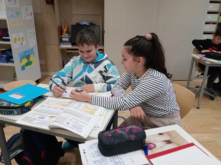 Dankenswerterweise werden die Kinder auch von freiwilligen Lesepatinnen unterstützt. Sie üben mit den Kindern das Lesen mithilfe von motivierenden Lesetexten oder Lesespielen.