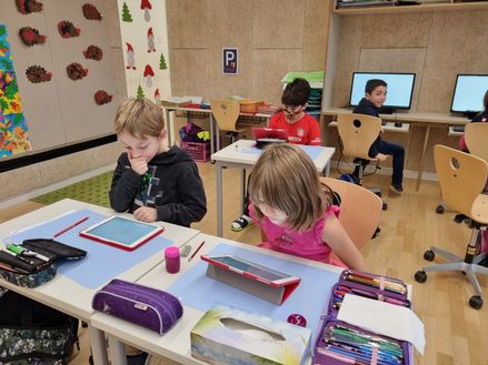 In der Volksschule Gloggnitz stehen den Schülerinnen und Schülern eine Vielzahl an digitalen Lernangeboten zur Verfügung. Neben Bee-Bots, mit denen erste Programmierbefehle geübt werden können, werden auch Tablets regelmäßig in den Unterrichtsalltag integriert.