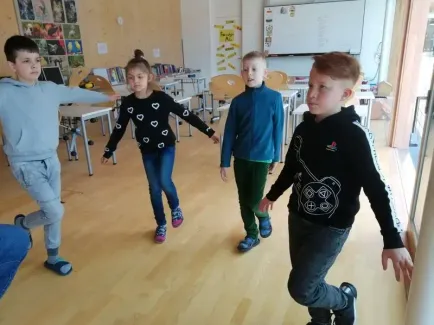 Die tägliche Turnstunde gibt den Kindern die Möglichkeit Bewegungserfahrungen zu sammeln und im Spiel soziale Kompetenzen zu erwerben.