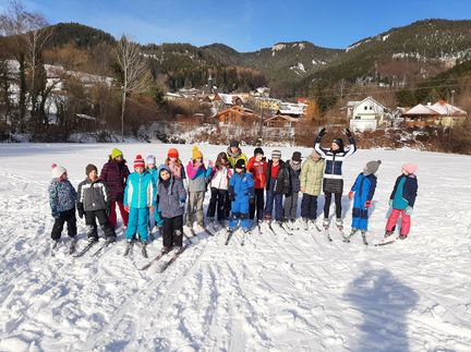 Zusätzlich zu den zwei Turnsälen und dem Bewegungsraum stehen den Kindern eine Kletterwand, ein großer Schulgarten und im Winter der Eislaufplatz zur Verfügung. Bei ausreichender Schneelage können die Kinder auch an Schitagen teilnehmen.